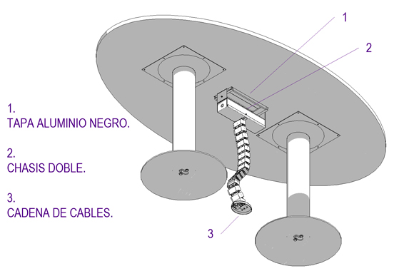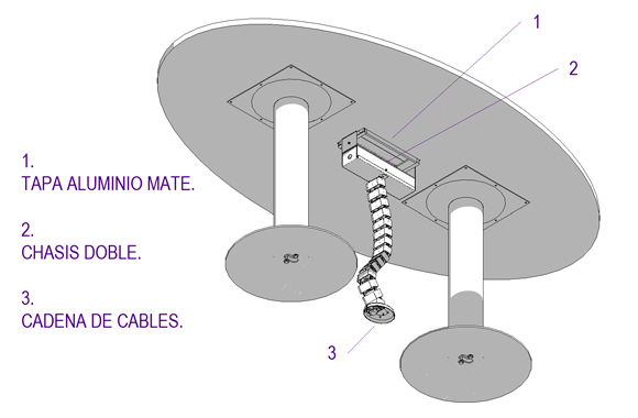 3. Soporte de electrificación (opcional), chasis doble con tapa de aluminio y cadena para subida de cables.