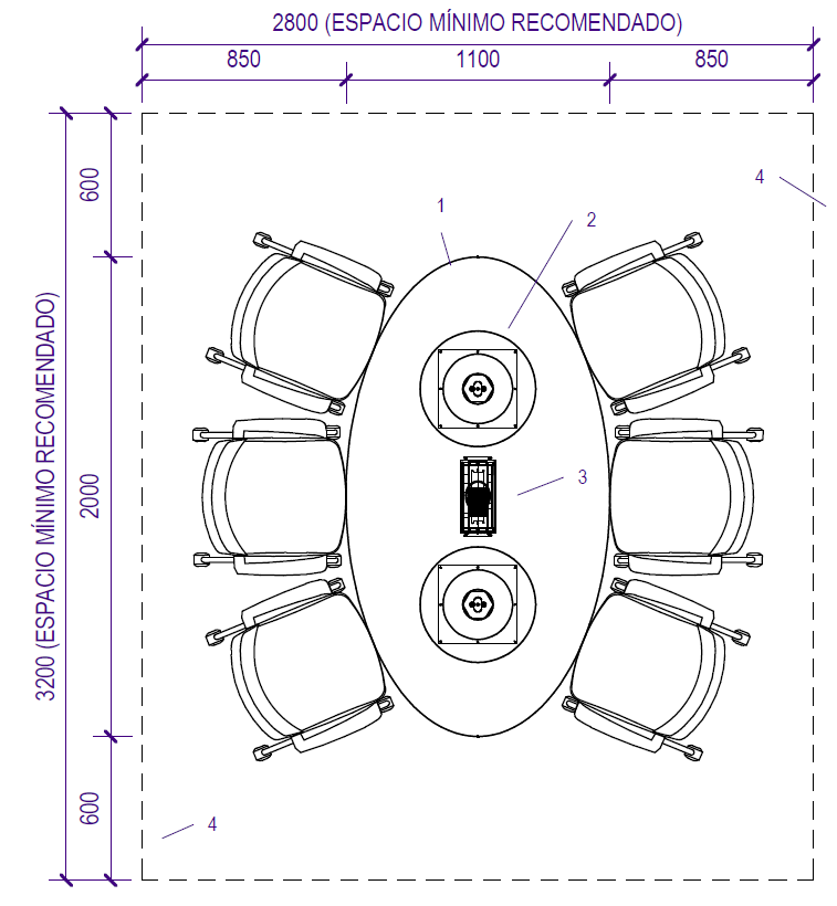 4. Perímetro del espacio mínimo recomendado.