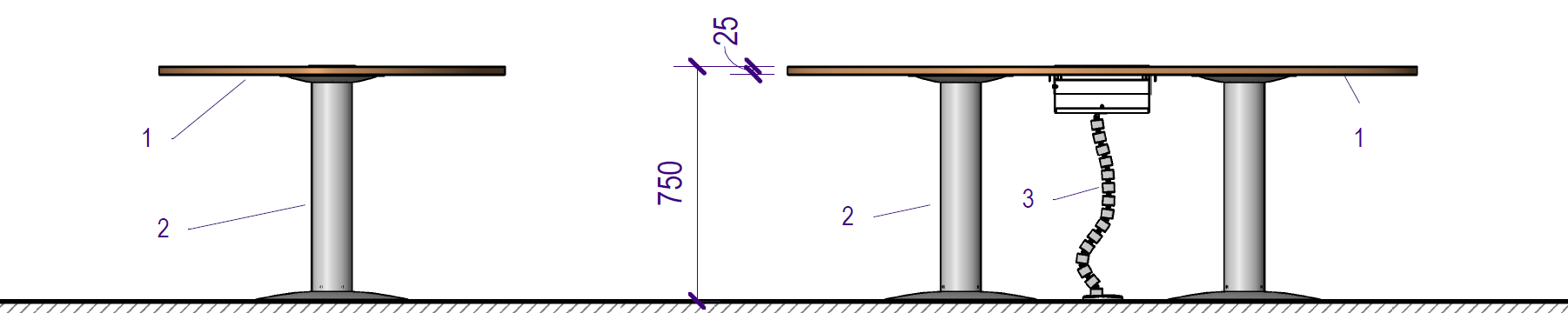 1. Cubierta MDF 25 mm revestido por ambas caras en laminado de alta presión (trascara Balance) con cantos rectos de PVC de 2 mm de espesor.
