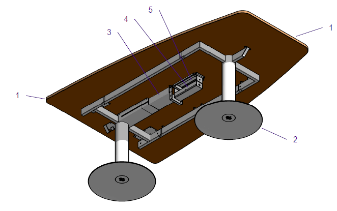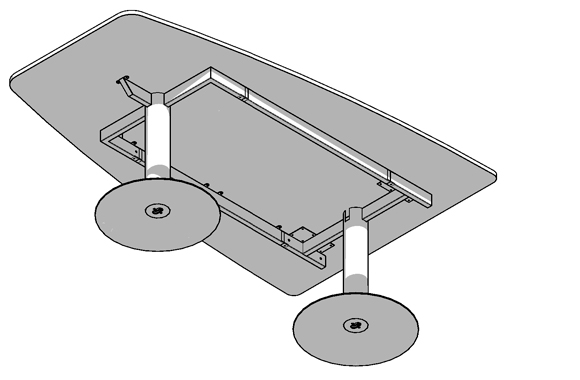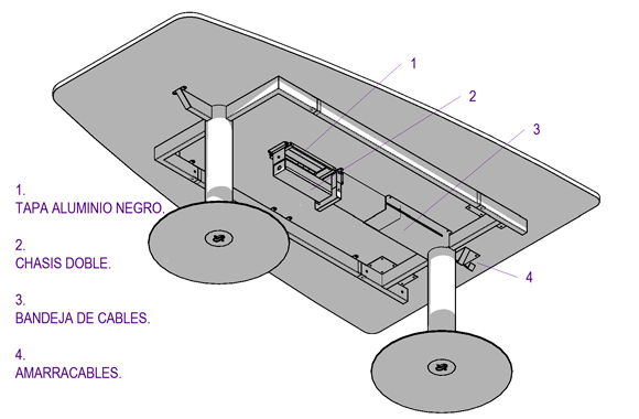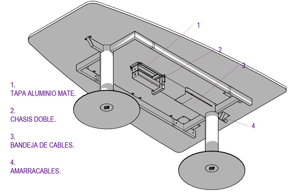 2. Sistema estructural con pedestales con base disco y bastidor superior. Acero electropintado.