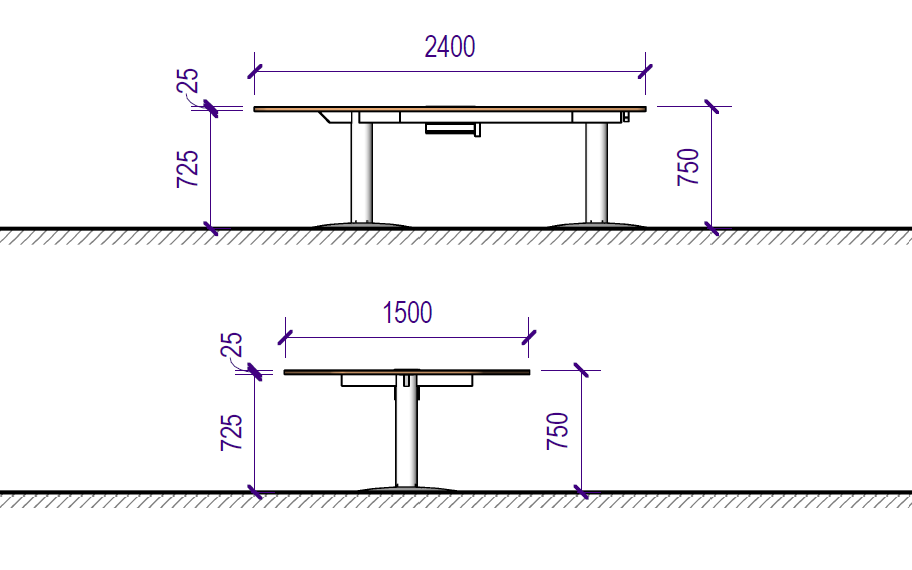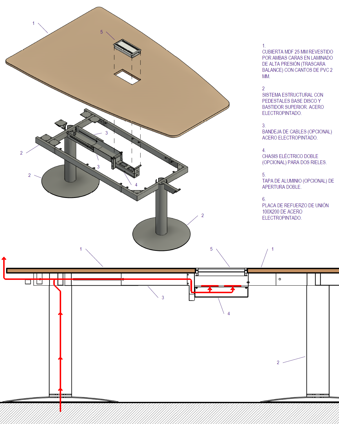 Ficha Técnica - [MRBD07P240X150] MESA REUNIONES BASE DISCO 07P. 240 x 150 cm