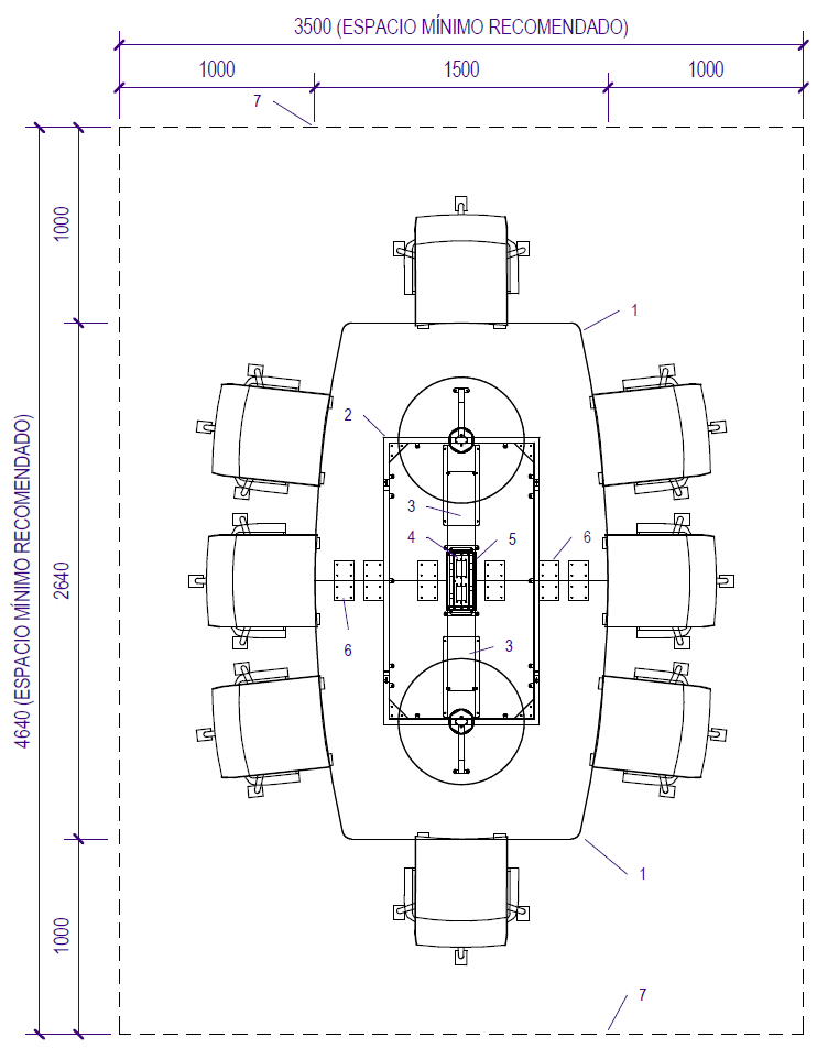 7. Perímetro del espacio mínimo recomendado.