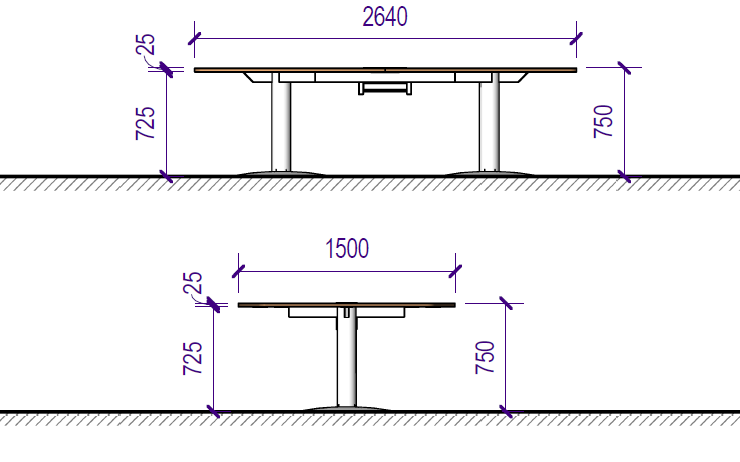 Ficha Técnica - [MRBD08P264X150] MESA REUNIONES BASE DISCO 08P. 264 x 150 cm
