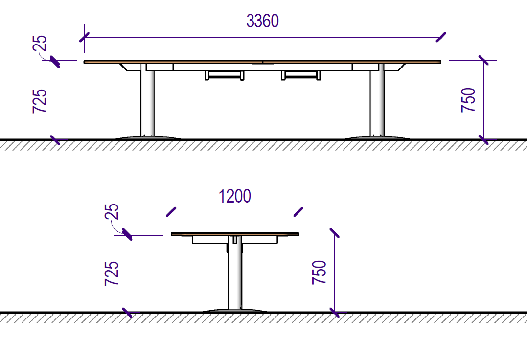 Ficha Técnica - [MRBD10P336X120] MESA REUNIONES BASE DISCO 10P. 336 x 120 cm